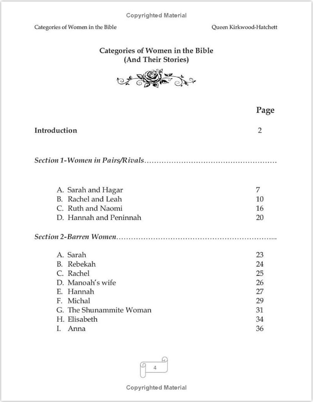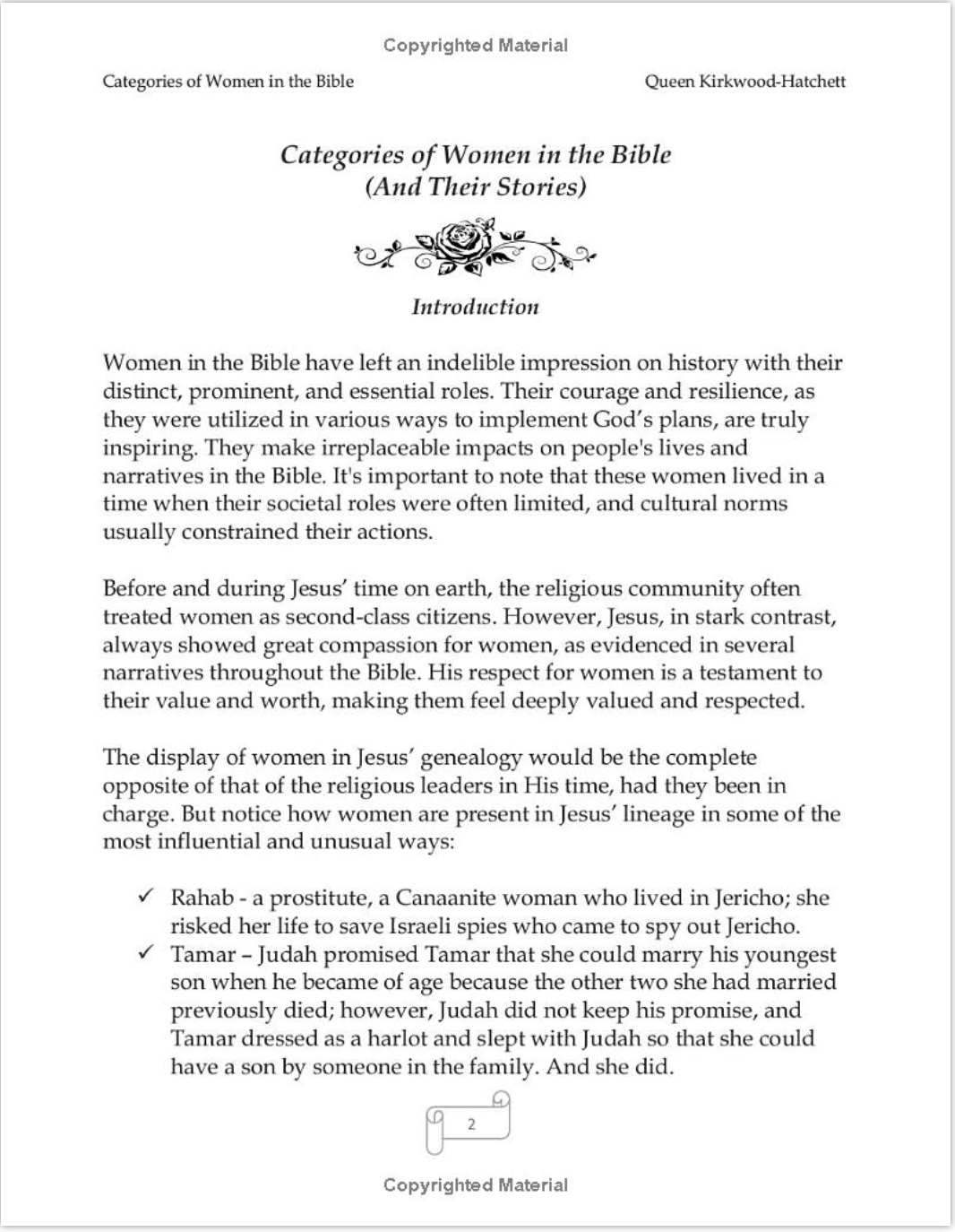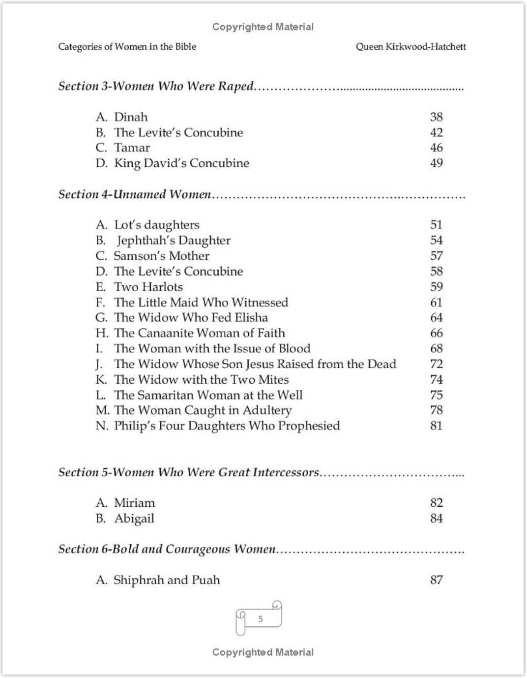Like men in the Bible, there are a handful of the same women who are the subjects of sermons and devotionals. The Christian community often recycles these narratives over and over again, leaving a flat perspective of how God loved women and used them to empower, encourage, assist, and even lead other women and men. Categories of Women in the Bible (And Their Stories) features over 50 women, many whose narratives are controversial and often taboo topics in the Church like, survivors of sexual assault or bold and courageous women.
