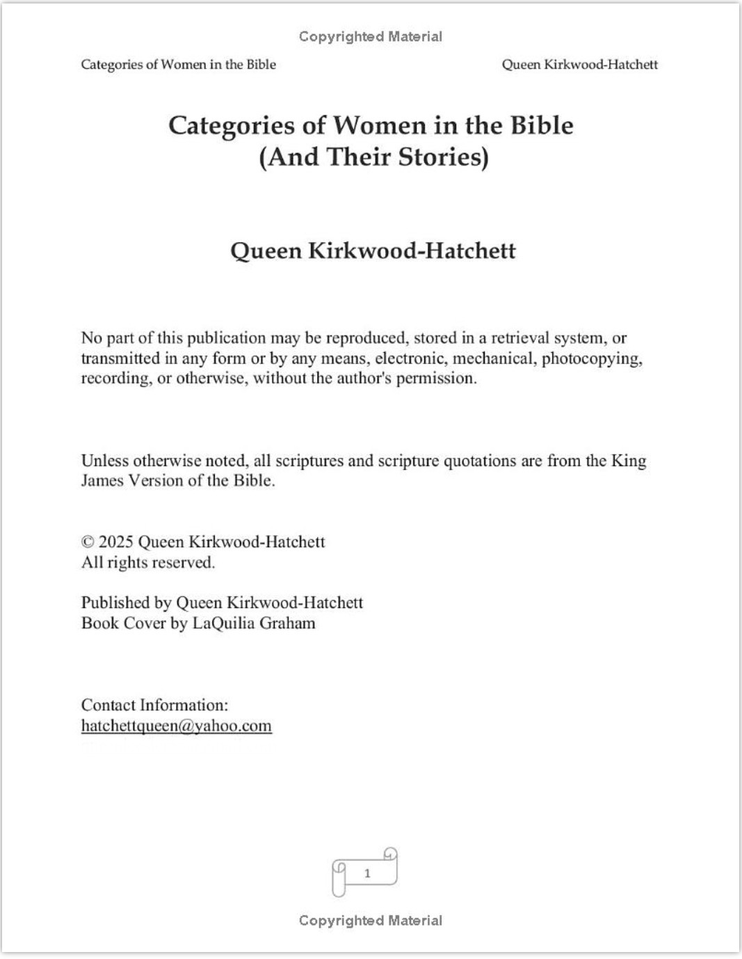 In Categories of Women in the Bible (And Their Stories) the author brings these women’s stories to the forefront because in their challenges and triumphs others can find hope and faith to fulfill their destiny and calling.